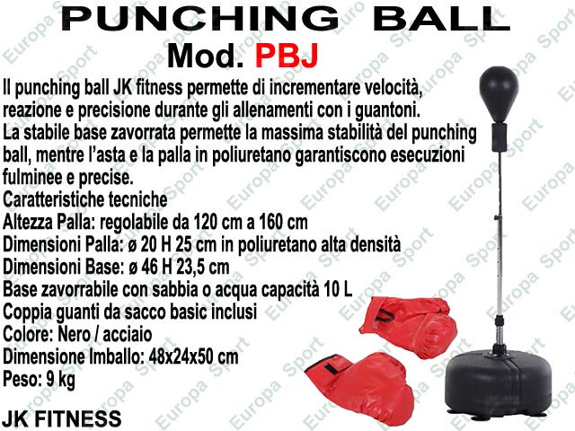 PUNCHING BALL - JK FITNESS - ALTEZZA DA 120 A 160 CM - MOD. PBJ
