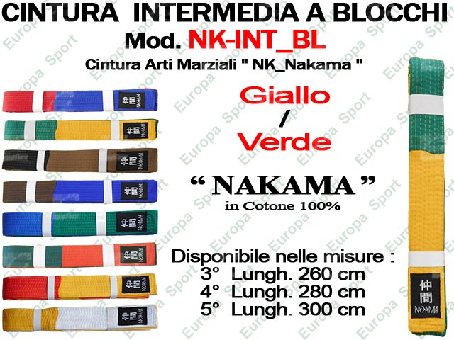 CINTURA ARTI MARZIALI - GIALLA / VERDE - MOD. NAKAMA INT_BL