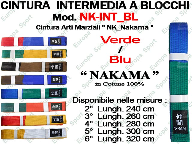 CINTURA ARTI MARZIALI - VERDE / BLU - MOD. NAKAMA INT_BL