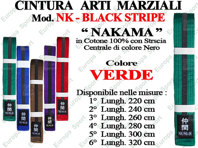 CINTURA ARTI MARZIALI - VERDE - MOD. NAKAMA - BLACK STRIPE