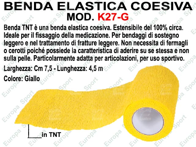 BENDA ELASTICA COESIVA IN TNT CM 7,5x4,5 MT - GIALLA - MOD. K27-G